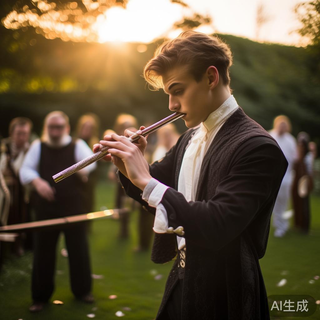 “您也是音乐家吗?”一位俊美的绅士——不过只是他父母的儿子——问道:“您吹奏了这奇妙的笛子,竟亲手雕刻而作。这简直便是天才,执掌一切的天才。哦,天啊!这时代提倡,每个人都靠此而活。啊,希望您用这份简单的音乐征服我们。”