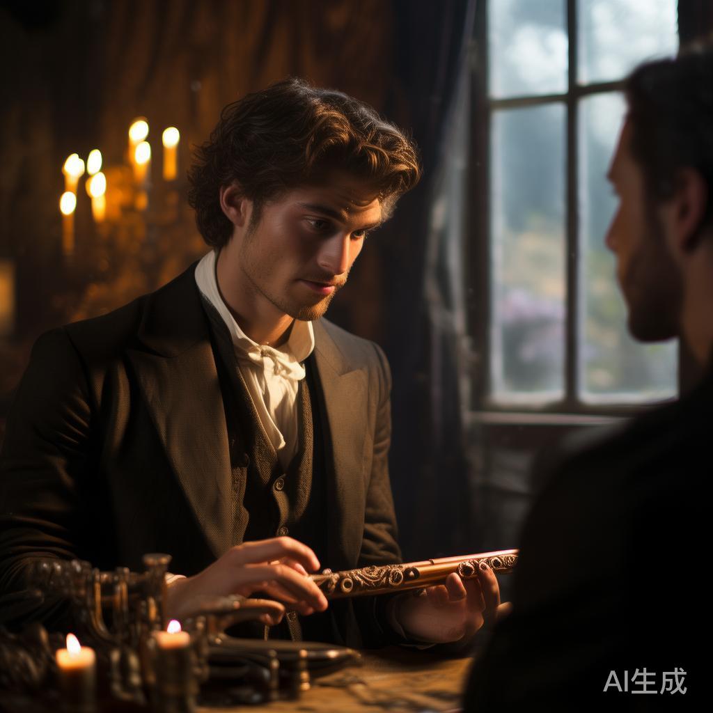 他便将用水边胞叶雕成的笛子递至牧师的儿子,同时高呼,这位家庭教师将使用它为大家进行独奏。
